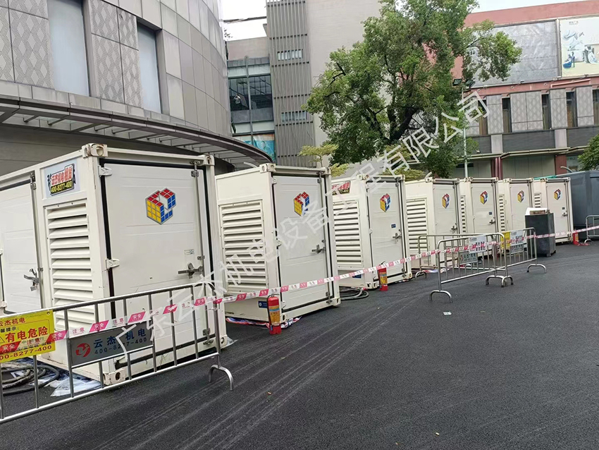 2023年7月云杰13臺(tái)靜音發(fā)電機(jī)組并機(jī)聯(lián)網(wǎng)應(yīng)急保電案例現(xiàn)場(chǎng)