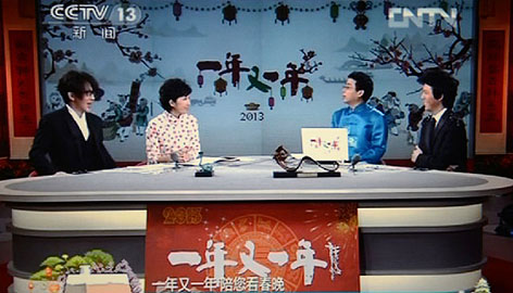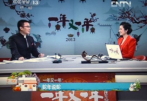 ??? 2013年2月9日除夕,國(guó)家文化產(chǎn)業(yè)示范基地山西宇達(dá)集團(tuán)創(chuàng)意設(shè)計(jì)制作的高端青銅"蛇"系列藝術(shù)禮品再次被中央電視臺(tái)春晚節(jié)目組選中,其中《金蛇狂舞》和《常如意》兩款還被請(qǐng)上中央電視臺(tái)除夕特別節(jié)目"一年又一年"的直播臺(tái),讓億萬(wàn)觀眾再次感受作為中國(guó)文化特有符號(hào)之一的生肖蛇的獨(dú)特魅力。這是繼2011年農(nóng)歷兔年以來(lái),宇達(dá)高端青銅藝術(shù)生肖禮品第三次亮相央視春晚。