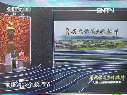 ??? 2012年9月10日晚,由中央電視臺(tái)、光明日?qǐng)?bào)聯(lián)合舉辦的2012"尋找最美鄉(xiāng)村教師"大型公益活動(dòng)頒獎(jiǎng)典禮在中央電視臺(tái)隆重舉行。