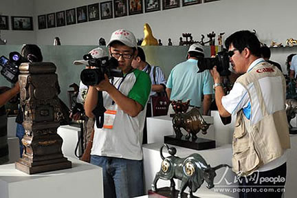 人民網(wǎng)山西運城6月9日電 (記者 伍彧彧) 6月9日下午,"華夏之根"第四屆全國網(wǎng)絡媒體山西行到達運城市采訪。來自人民網(wǎng)、新華網(wǎng)、央視國際等43家知名網(wǎng)絡媒體的編輯記者在夏縣實地采訪山西宇達青銅雕塑鑄造藝術精品。