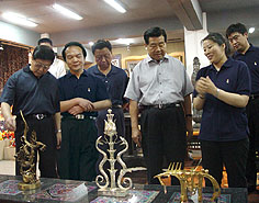 2004年6月7日,全國政協(xié)主席賈慶林、副主席王忠禹在北京韓美林工作室專程參觀了宇達制作的青銅雕塑和青銅禮品,并聽取了衛(wèi)恩科總經(jīng)理長達三個小時的宇達青銅雕塑和青銅禮品的詳細(xì)介紹。賈慶林主席對宇達的青銅雕塑和青銅禮品給予高度評價,并對衛(wèi)總提出,希望宇達能進一步拓展中國的青銅旅游商品市場的殷切希望。